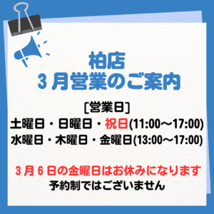 『ふじみ野店』・『柏店』 令和8年3月営業のご案内